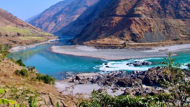 怒江大峡谷是条大裂缝,水在底里吼,山在两侧站,路像挂在崖上的线。