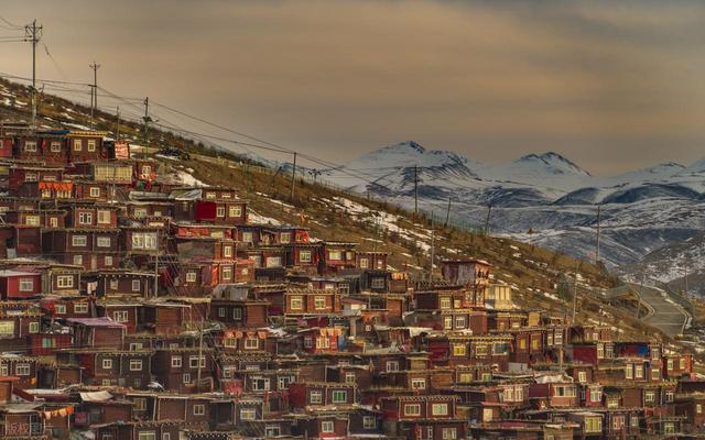 色达像一片红色的海。佛学院在山谷里铺开,小房子一盏灯一盏灯亮起来,安静得连脚步都放轻。