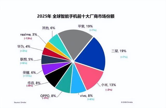 大家关注的传音,2025年,排在第6名,但份额也有8%,和OPPO、VIVO的份额其实相差不大,四舍五入后,都是8%,几乎是同一水平。