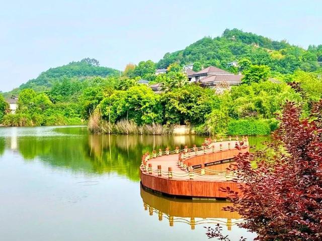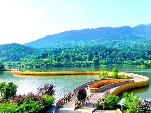 重庆少有的“山水太极图”!湖弯成八卦形状,绕着骑自行车特别舒服。湖心岛白鹭多,傍晚成群飞过茶山。山上有三百年的古茶树,春天来能看到采茶人背着竹篓在梯田里忙碌。