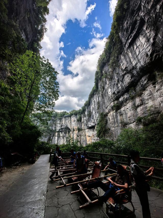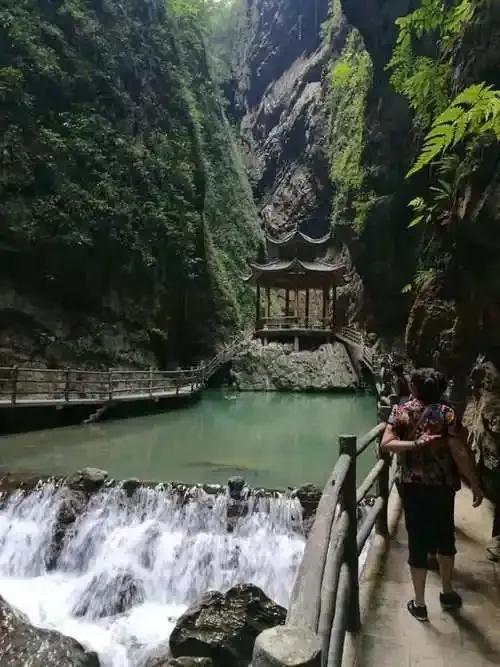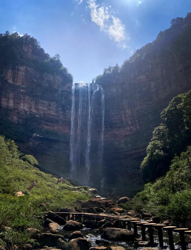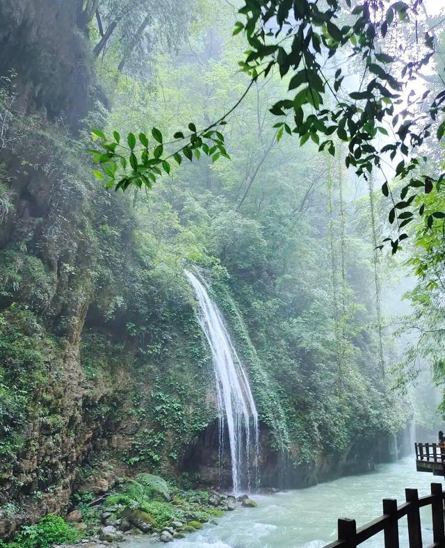 一脚踏重庆一脚踩贵州的峡谷!沿着河谷走6公里栈道,左手是瀑布右手是深潭,最窄的“鱼跳峡”要侧身过。夏天河谷里全是蝴蝶,水凉得可以冰西瓜。走到尽头坐缆车上去,回头看见整条峡谷藏在云雾里。