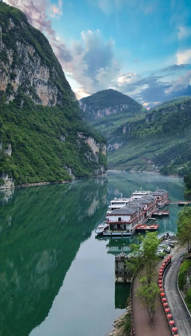 巫山小三峡里最野的一段!船进峡谷就变窄,水绿得见底。两边崖壁上能看到千年悬棺,还有野山羊在石缝里站着。秋天满山红叶时最好看,红黄绿颜色叠在一起,倒映在江面上像油画。