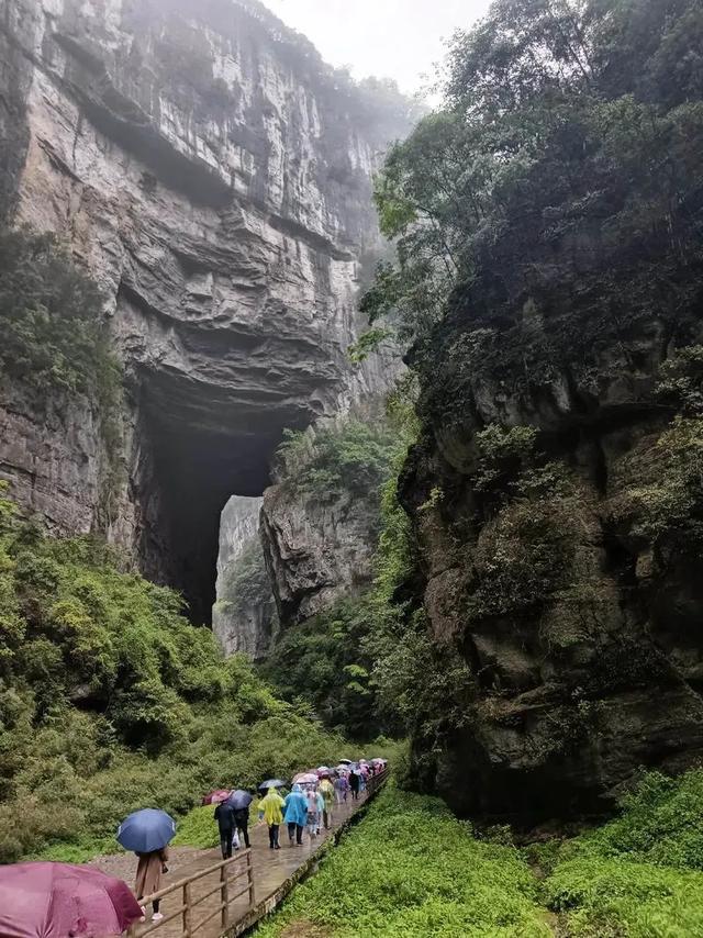 别只晓得武隆是拍电影的!这里的自然风光才叫绝——天龙桥、青龙桥、黑龙桥三座巨型天然石桥,全是喀斯特地貌亿万年的杰作。站在坑底抬头望,山像被刀切开一样陡直,还有瀑布从桥洞飘下来。早晨雾没散的时候走进去,就像闯进了仙侠世界。