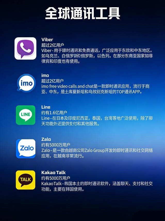 全球十大通讯工具,Whatsapp、Facebook都在榜! 在数字化时代,通讯工具早已跨越国界,成为连接全球的核心纽带。基于最新用户数据和影响力,本文盘点了排名前十的全球通讯工具:WhatsApp 领跑、微信稳居前列、蝙蝠强势崛起… 每款工具都有独特定位与核心优势,下面 ... 世界十大04-25