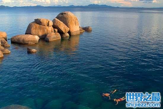 马拉维湖,面积30800平方公里,世界第九大湖,非洲第三大淡水湖,世界第六深湖,南北长560公里,东西宽长24~80公里,平均水深273米,北端最深处达706米,湖面海拔472米,湖水由四周14条常年有水的河流注入,其中以鲁胡胡河水量最大,青翠挺拔的山峰相对耸立在狭长的湖面两岸,形成两道壁障,景色极为壮观。