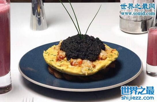 这个煎蛋饼用了足足10盎司的独家鲟鱼子酱(成本至少65美元每盎司),,加上整个龙虾和最好的奶油和香葱,当然还有6个鸡蛋,不过只是是普通的鸡蛋。