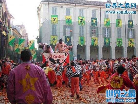 橘子之战在意大利北部城市伊夫雷亚发生。就像西班牙的番茄节一样,这个节日似乎都源于市民的反抗。