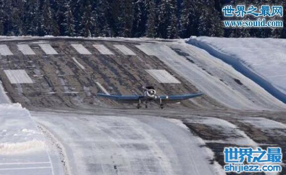 高雪维尔机场位于法国阿尔卑斯山脉之中,山腰凿出的跑道,高雪维尔的跑道一端是一个滑雪跳台,机场在近2000米海拔上,但是跑道仅有500多米长,而且这里的斜坡陡峭程度让人难以置信,倾斜度达到18。5度。