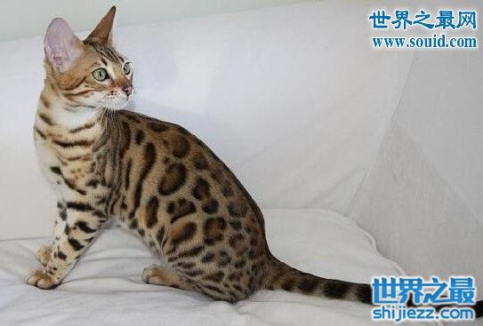 孟加拉豹猫是一种很独特的猫种。它的祖先是亚洲豹纹猫和埃及家猫的混种猫。这个猫种在1984年已为TICA国际猫协会所承认。不过一定是亚洲豹纹猫四代之后,才能算真正的孟加拉豹猫。到孟加拉豹猫(第四代豹猫)这一代,猫身上只剩下1/8的亚洲豹纹猫的血统,脱离了亚洲豹纹猫的野性,气质开始如其他家猫一般温顺。