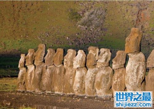 被称为是世界上最神秘的地方。在这个岛上有许多世界闻名的石像。这些大石像均面朝天空,仿佛在祈求什么。令人诧异的是,除了石像自己,没有人知道它的雕刻者是谁,更没有人知道20米高90吨重的石像是怎么完成的。更奇怪的是,科学家曾以遗留下来的原始石器去刻坚硬的石像,结果石器反而碎裂了。