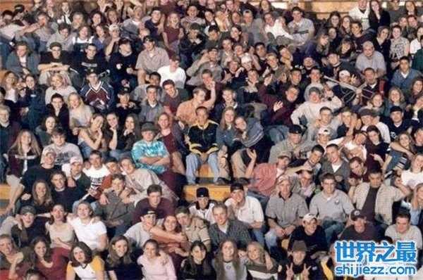 这看起来就像是任何一间高中的团体照片,但是,如果你仔细看看左上角的话,有两位比着枪指着镜头的男孩,他们正是Eric Harris和Dylan Klebold。他们就是在1999年轰动国际的哥伦比亚高中枪杀案的凶手。