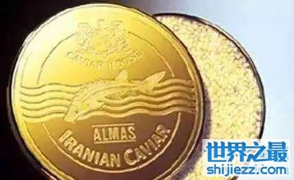 艾玛斯鱼子酱是世界上最顶级的鱼子酱,产自伊朗,这种食物也非常罕见,价格也昂贵,一罐大约要2.5万美元,就连外部包装罐都是24K金的。