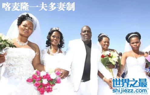 喀麦隆实行一夫多妻制,娶妻上不封顶,一个男人三四个老婆很平常,几十上百个老婆也不稀奇。喀麦隆虽然实行一夫多妻制,但婚姻也是自由的,这里有两种结婚证:一种是一夫一妻制结婚证,一种是一夫多妻制结婚证。如果一个男人和一个女人是第一次婚姻,在领结婚证时就要决定这个家庭将是一夫一妻制家庭还是一夫多妻制家庭。如果未婚妻不同意一夫多妻制,男方也认可一夫一妻制,他们就领取一夫一妻制结婚证,这意味着丈夫在他们婚姻存续期间不得再娶别的女人,否则就违法。