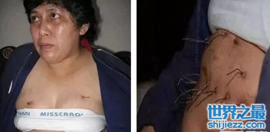 印尼一位40余岁的幼儿园女老师,被媒体称为“铁丝女人“。努西达患了一种罕见疾病,从大学时身体就开始不断长出铁丝,甚至有时铁丝一夜之间长到10公分!努西达一直寻找着这个怪病的原因和治疗方法,但没有人可以给她一个明确的答复。至今无法解释其病因。