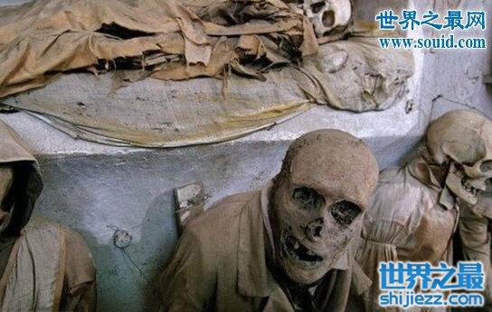 此墓穴位于西西里岛的巴勒莫,它展示的是一种死的戏剧方式,将尸体木乃伊化,保持着他们平常的穿着。现在,大约有8000木乃伊,包括那些僧侣和贵族,每次进去观看的人, 都害怕这些僵尸会起尸袭击人。在20世纪20年代,萝沙丽亚·伦巴多的尸体提供了一个很好的新的方法来保护尸体。