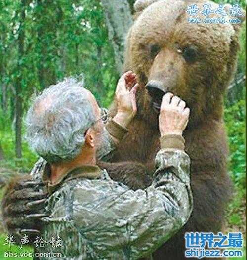 2007年12月,美国阿拉斯加州68岁的退休教师查理·万德对那些凶猛的动物并不畏惧,22年来,他在当地山林中修建小屋,并且“设宴”款待上门觅食的灰熊“客人”。令人称奇的是,这些毛茸茸的庞然大物见了查理个个服服贴贴,甚至搂搂抱抱,亲密“接吻”。