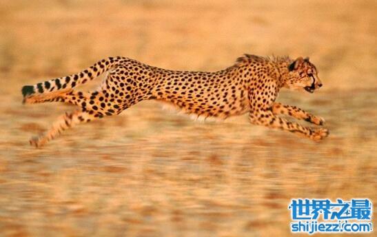 猎豹以珍贵的皮毛、美丽的斑点和行动极其敏捷而闻名,是目前世界十大速度最快的动物中最快的陆地动物,从起跑到时速112公里仅需几秒钟。然而猎豹的最高时速,通常只能维持在400到500米之间。猎豹速度如此之快和长期追捕瞪羚、羚羊这些猎物有关。经过数万年时间的积累,猎豹不断适应环境,逐渐成为地球上运动最快的陆地动物。