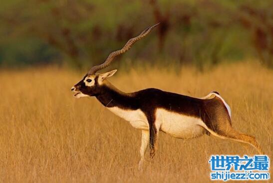 印度黑羚属有角类动物,他们看上去和跳羚长得很像,但雄性黑羚的皮毛是黑色的,而不是像跳羚一样是红棕色。黑羚体型轻盈灵活,善于长距离飞速奔跑并越过各类障碍,成年黑羚的平均奔跑时速可达50英里。当黑羚感觉到危险时,整个羚羊群就会开始跳跃并飞速逃离,除了跳跃和奔跑以外,它们还依靠敏锐的视力来观察和避免危险。