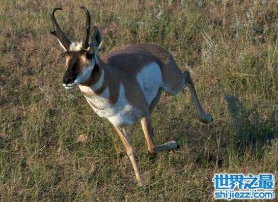叉角羚是世界十大速度最快的动物中,北美地区奔跑速度最快的陆地动物,跑起来时速可达60公里到100公里不等。第一次在北美发现并识别出这种动物的,是刘易斯和克拉克的探险队。正是凭借跑步优势,叉角羚们能够躲开美洲狮还有狼这些天敌的追捕。尽管猎豹奔跑速度是世界第一,但其耐力远不如叉角羚。叉角羚视觉敏锐,能看到数千米以外的物体。