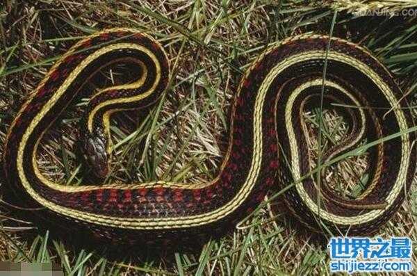 丝带蛇形如丝带的无毒蛇丝带蛇,分布在加拿大东南部和美国东部。丝带蛇栖息在沼泽、池塘、湖岸等潮湿地带,有晒太阳的习性,比较耐寒,冬季会冬眠。以小鱼、蝾螈和青蛙为主食,也吃昆虫和腐肉。
