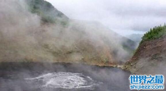 沸湖位于加勒比海小安的列斯群岛的多米尼加岛上,藏身于岛南部火山区的山谷中。每当湖水涨满时,从湖底蒸腾而上的水汽高达两米。整个湖面热气腾腾,湖水翻滚,好像一锅煮沸的开水。地质学家认为,沸湖底部的圆洞是一个巨大的间歇喷泉的喷水口。这热喷泉一直在有规律地喷发。在湖水涨满时,热喷泉的高温水汽直接进入湖水,把湖水加热,整个湖就热气腾腾。