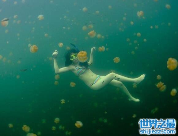 这个世界上最奇怪的湖泊本来是大海的一部分,但是在数万年前,因为地壳的运动,导致地床上升,逐渐形成了一个湖,原本在湖中的大多数海洋生物都已经灭绝,而水母因为主要靠海藻分泌的营养素为生,所以幸存下来,而因为天敌的消失,这里的水母也渐渐进化成无毒水母,成为世界上独一无二的品种,所以你在这里完全不用担心中了水母的毒。