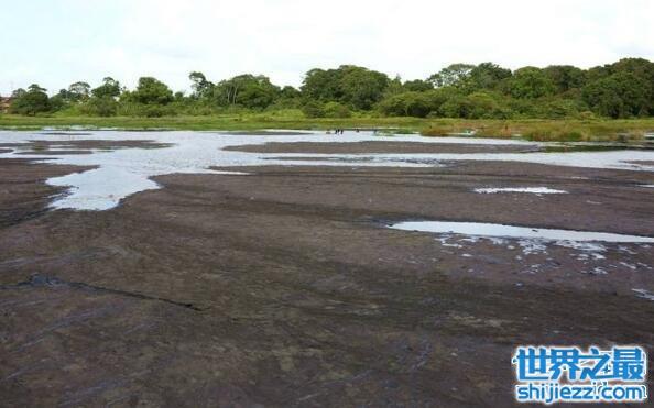 沥青湖是世界上最大的天然沥青湖,整个湖泊全部都是液态沥青,由于沥青的存在保存了不少远古化石,使这里格外的出名。
