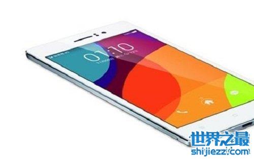 第二名:Oppo R5机身厚度:4.85毫米。同样是我国的智能手机品牌,Oppo R5的机身厚度仅为4.85毫米,荣登亚军宝座。配置方面,5.2英寸AMOLED材质的1080P屏幕、64位高通骁龙615处理器、2GB RAM都算主流,当然你也会在机身背面发现一颗凸出的索尼1300万像素摄像头。