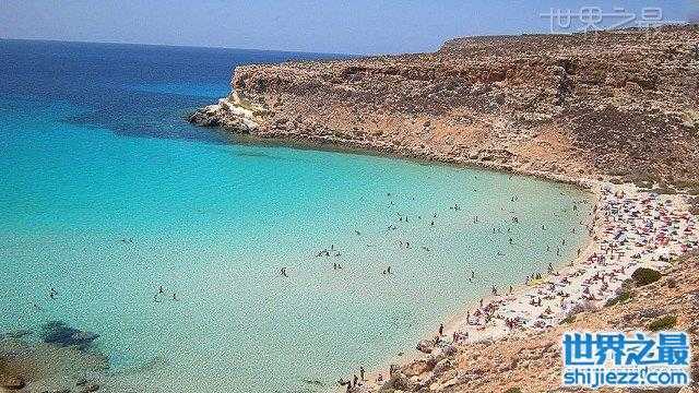 兔子海滩位于意大利兰佩杜萨岛(意大利)。这儿有夺目的白色山崖,荧光蔚蓝的海水。温度偏高,或许有人不会觉得这是最美的沙滩之一,但这儿即是,由于这儿是海龟和海豚的聚集地,所以动物爱好者们千万不要错失哦。↓↓↓