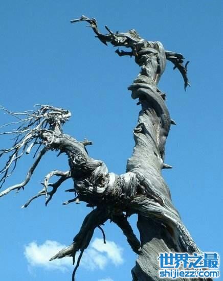 这棵树的名字叫做玛士撒拉树,年龄为4800岁,属于大盆地狐尾松。其实原来在这个地方有一个比玛士撒拉树更为年长的树,这棵树的名字为普罗米修斯。但是早前因为他的腐烂情况比较严重,就被人们给砍掉了。人们曾经以为它就是最古老的树,其实最古老的树并不是它。