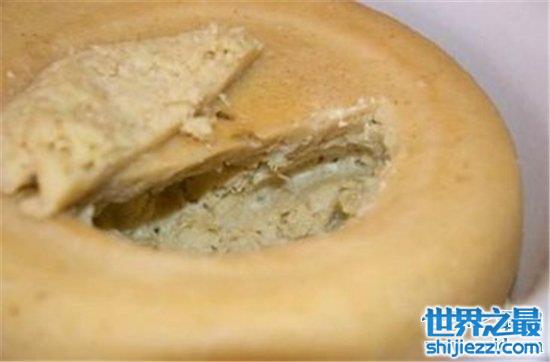 活蛆乳酪,只是听到名字就有一种满满的恶心感,产自意大利撒丁岛的活蛆乳酪,是让乳酪经过高度腐烂后引来蝇蛆而成,并且蛆虫会在活着的时候经过食用者的胃,极其危险,奇怪的是这样的食物并没有在世界最恶心的十大食物排名中第一,,估计是食用者过少食用性不强吧,毕竟多数人看到时就已经吐了。
