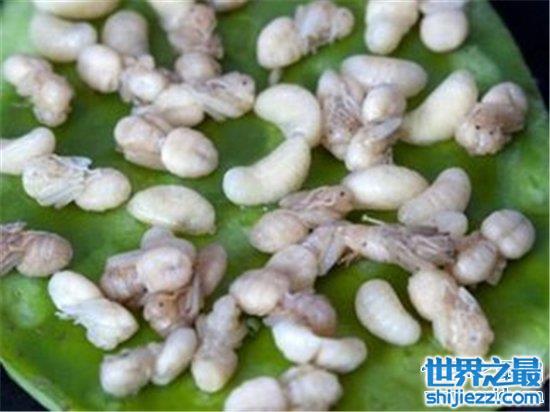这个占据世界上最恶心的十大食物第一的彝斯咖魔,光是名字就超级拗口,透露出与众不同的气息,来自墨西哥的彝斯咖魔取材自巨型光胸臭蚁的卵,它一般会被加进墨西哥玉米薄饼卷食用,其实如果没了解它的取材单就味道来说还是可以接受的,制作完工的彝斯咖魔是黄油味的。