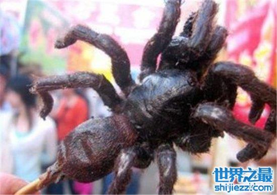 这是在世界上最恶心的十大食物中最令小编害怕的一种食物, 来自柬埔寨素昆地区的黑色长毛毒蜘蛛被人们配上盐和大蒜等调料放进油锅炸透端上餐桌,吃起来外壳酥脆,里面鲜嫩多汁,口感并不差的油炸毒蜘蛛,因它的可怕、恶心外观上榜世界上最恶心的十大食物。