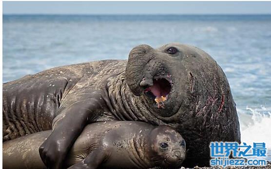 南象海豹因外形丑陋而被人称为世界十大最恶心的动物。南象海豹在近岸水域以南极鱼为食,在其他地方主要吃头足类。9~5月产仔。仔兽长130cm,重50kg,哺乳期3周。近况2.5周亲兽交尾,孕期11个月。雌性2~3年、雄兽4~6年性时尚。能活20年。时尚雌兽是1~5月、雄性2~5月上陆蜕毛,末时尚者是5月。它是动物界的"潜水亚军",最深可潜至2300米的深海,是仅次于抹香鲸潜水第2深的动物。