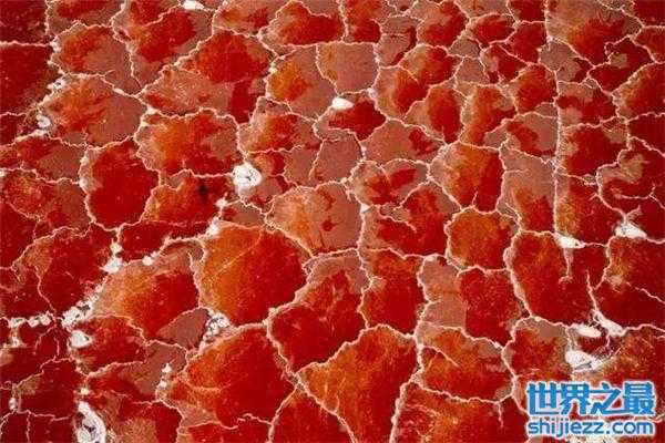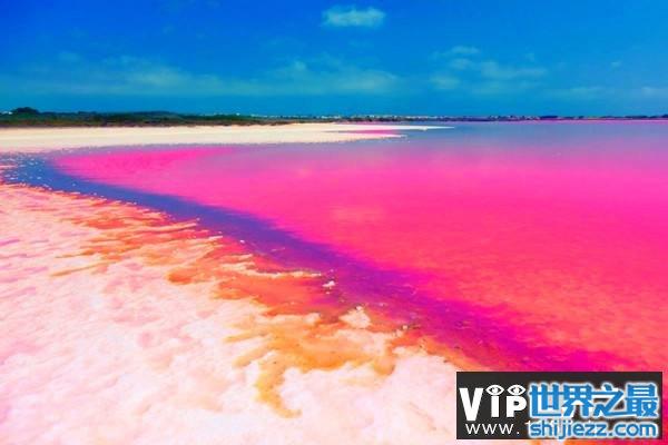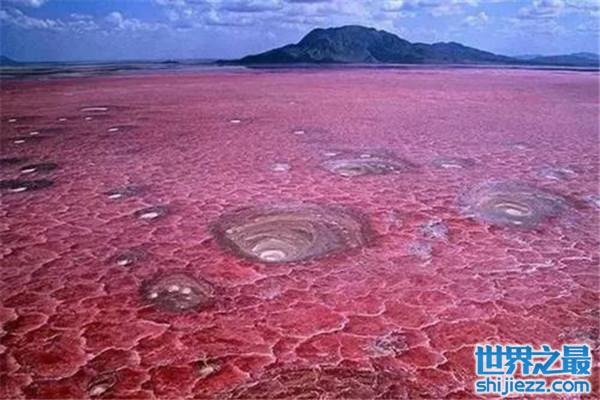 希勒湖从外表上看,如同一个巨大的粉红色的布丁,但是这全部都是由海藻所造成的,对人类的危害性很大。