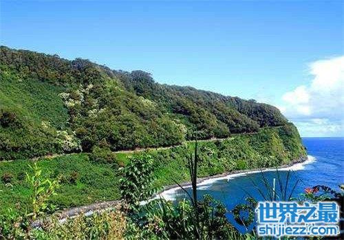 哈纳公路在美国夏威夷毛伊岛,全长83.2公里。这里是许多电影的拍摄地,有波澜壮阔的海景、黑色沙子的怡人海滩、湍急的瀑布,还有葱郁的山峰,更有美丽的乔木。
