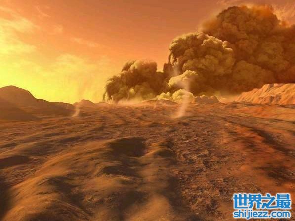 地球上的沙漠经常发生沙尘暴,火星上也有沙尘暴。火星尘暴在炎热、平静和干燥的条件下形成。由于它的面积小,热流比周围环境快。科学家观察到,火星上的沙尘暴比地球上的沙尘暴高10倍,直径50倍,这对昂贵的火星探测器构成了严重威胁。火星表面的沙尘暴是火星大气中独特的现象。火星每年有四分之一的时间笼罩在漫天飞舞的沙子中。由于火星土壤的铁含量高,沙尘暴被染成橙色,空气中充满了从地球上看像橙色云的红色灰尘。