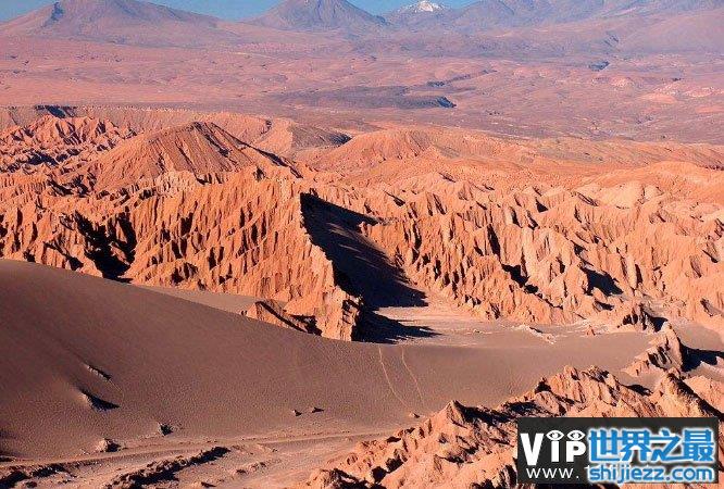 阿塔卡马沙漠有着旱极的称号,它位于智力境内,和太平洋相邻,这里的海岸线风景非常优美,但是却常年干旱,曾经连续14年没有下过一滴雨,平均年降水量仅仅只有0.5mm,是目前世界上最干旱的地区。