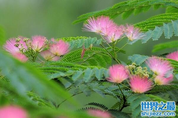 合欢,世界十大耐旱树木之一,又名绒花树,马缨花,落叶乔木,一般高4-15米。合欢喜温暖湿润和阳光充足环境,对气候和土壤适应性强,宜在排水良好、肥沃土壤生长,但也耐瘠薄土壤和干旱气候,但不耐水涝。其生长迅速,性喜光,喜温暖,耐寒、耐旱、耐土壤瘠薄及轻度盐碱,对二氧化硫、氯化氢等有害气体有较强的抗性。