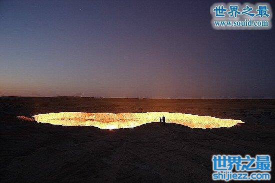 1971年,地质学家发现该区域蕴藏着大量的地下天然气,在常年的开采过程中,由于不慎出现钻探环状坍塌,从而形成了一个非常大的坑洞。为了防止有毒气体溢出,土库曼斯坦政府允许对坑洞中的天然气进行燃烧,这个坑洞从白天到晚上一直处于熊熊烈火燃烧状态。因此,这处燃烧的天然气坑洞也被人们称为“地狱之门”。