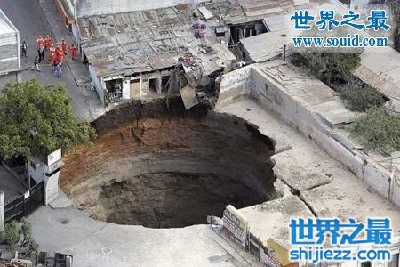 2007年,危地马拉突然出现地面塌方,十几处房屋瞬间落入一个300英尺深的污水池洞,从而导致2人死亡,数千人被迫撤离该区域。这个塌方的污水池是由于雨水和地下污水流动造成的。