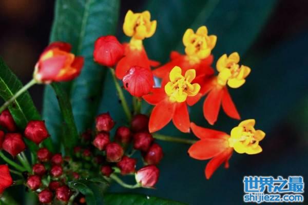 马利筋的花色为橘红色,十分鲜艳,它具有很强的观赏性,但是全株均有毒性,其中以乳白色汁液毒性最大,误食后会出现恶心、四肢冰冷等症状。