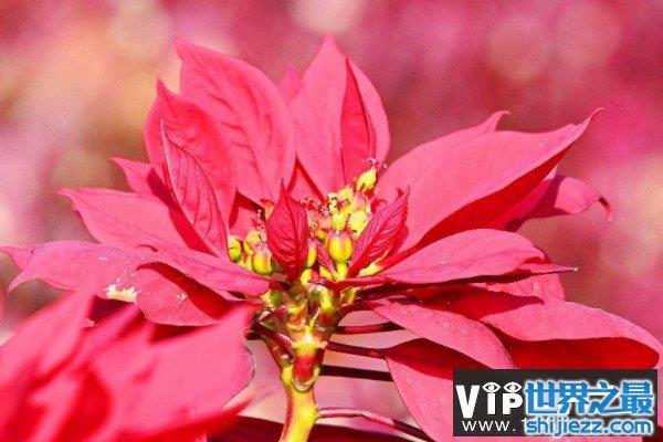 一品红属于灌木植物,是世界最毒的花卉品种之一,它经常被栽植于公园中,观赏价值极高,茎叶均能入药,有消肿的功效,但是其中的毒素也能致人休克死亡。
