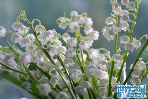 铃兰的花朵一朵朵排列在茎杆上,就像一串串小铃铛,非常灵动,它看起来安静可爱,但是整株植物都带有毒性,触摸后可能出现恶心、呕吐等不适症状。