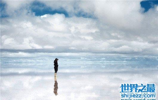 原本是巨大的咸水湖,经过岁月的沉积,形成了被盐层覆盖的平原,当阳光普照大地,一眼望去满眼镜光,亮晶晶的使人睁不开眼,反射着五颜六色的光,就像是给大地贴了一个闪片。