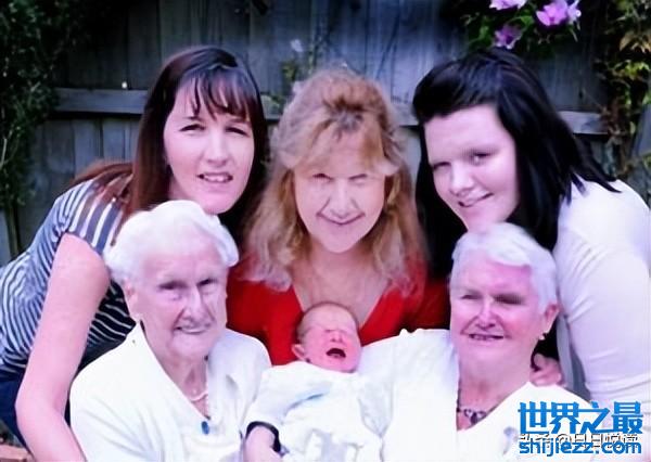 关于家庭最多能达到几代人的世界吉尼斯纪录是多少?答案是七。获得纪录的家族的最年轻伟大的祖父母是奥古斯塔蓬,年龄是109年97天,其次是89岁的女儿,70岁的孙女,52岁的曾孙女,33岁的曾曾孙女,15岁的曾曾曾孙女和出生于1989年1月21日的曾曾曾曾孙。