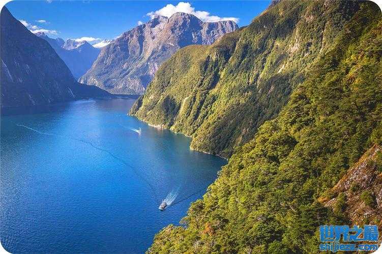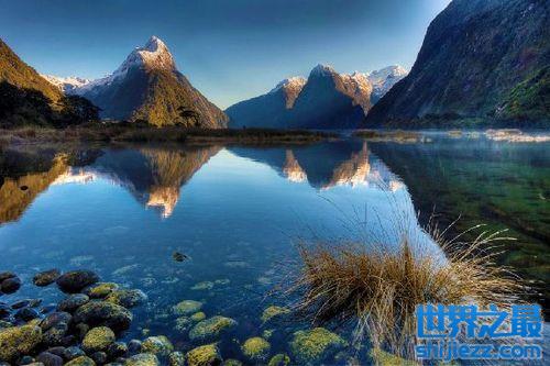 米尔福德峡湾位于新西兰西南部的峡湾国家公园内,是一片在冰河时期形成的特殊地貌,其最深落差高达265米,由于冰河时期的冰川长期的侵蚀,峡湾最长嵌入内陆40公里,山壁也被垂直侵蚀达1千多米,如此壮观景色似乎只能在新西兰看到。