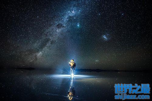 乌尤尼盐沼位于玻利维亚的西部高原内,每年雨季来领都会把它注满,由于海拔差异极小,面积辽阔,湖面就像一面镜子,反射天空的景象形成传说中的天空之境。