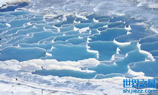 棉花堡位于土耳其代尼兹利市的北部,是土耳其远近闻名温泉度假胜地,因其钙化的“山丘”酷似棉花而得此名,远远望去十分美丽,令人不禁感慨,大自然的鬼斧神工。