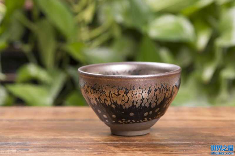 (古代中国宋朝)曜变天目茶碗 :曜变天目茶碗是宋代黑釉的建盏,是宋人斗茶用的。日本人形容这个碗,都是用“碗中宇宙”这种词,说里面仿佛是深夜海边看到的星空,高深莫测。曜变天目茶碗的烧制成功具有极大的偶然性,在一定的温度条件下会散发迷人的七彩光晕。当时烧瓷高手们为了使原本略显沉闷单调的黑瓷也能具有丰富华丽的纹饰,就研发了“曜变”技术。曜变因为对窑温、烧造气氛等条件要求极高,因此极为难得。现如今,传世曜变建盏仅四件,均由日本保存下来。